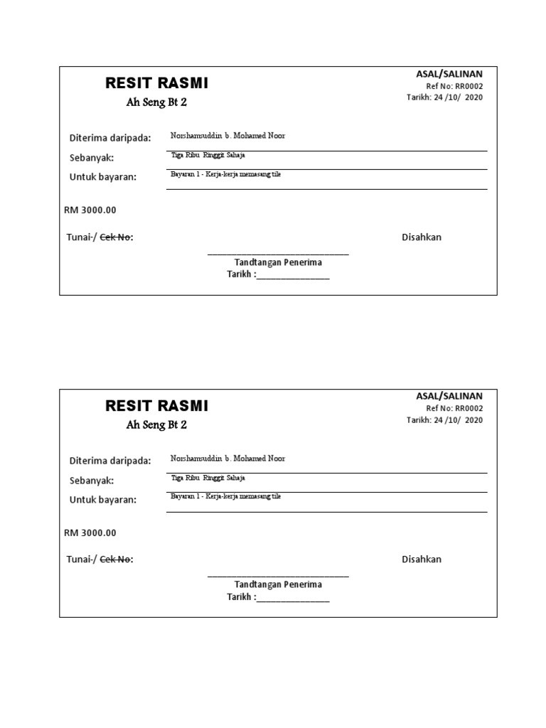 Min 1book Only Official Receipt Resit Rasmi Custom Shopee Malaysia